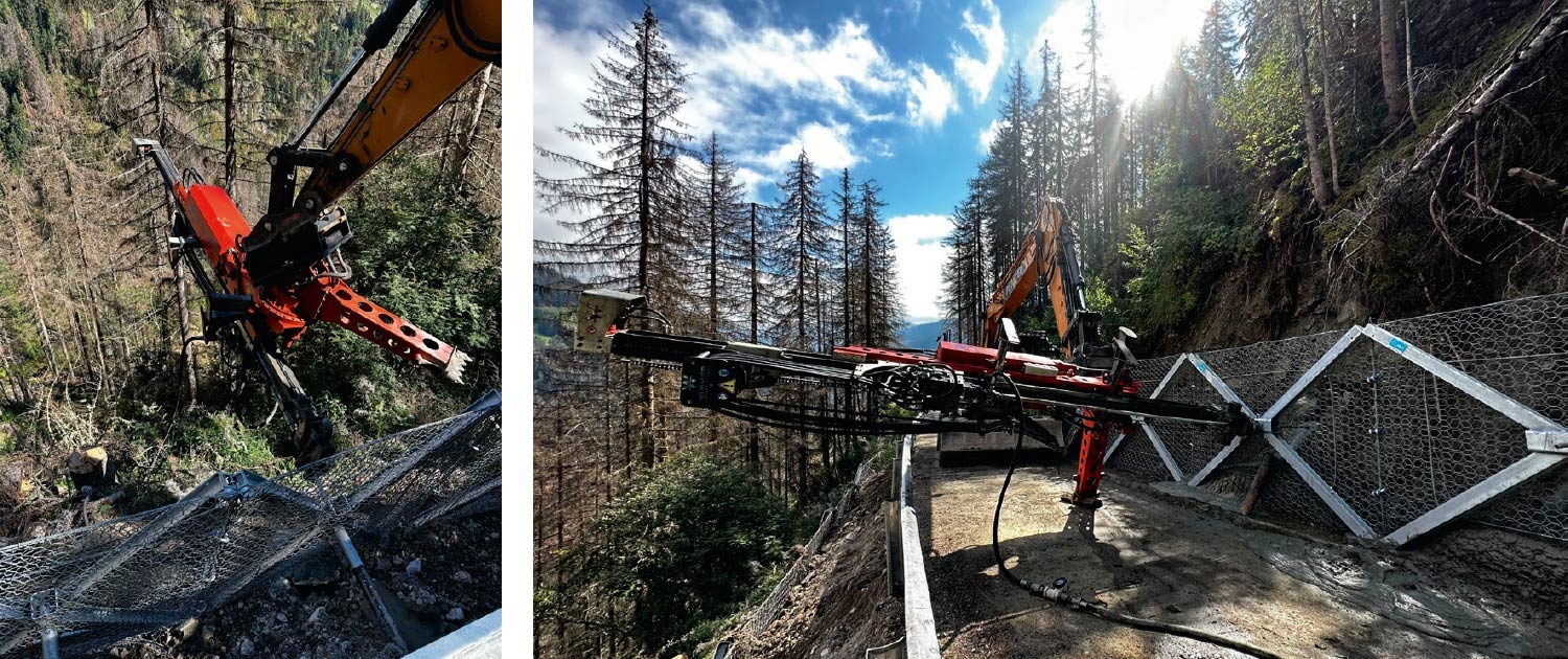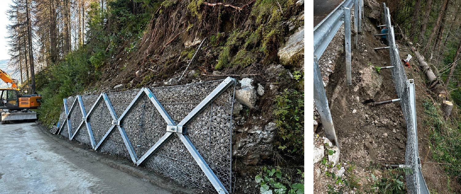 Sicherung der Bergsstraße berg- und talseitig wegen instabilen Böschungen durch heftige Regenfälle herbeigeführt.